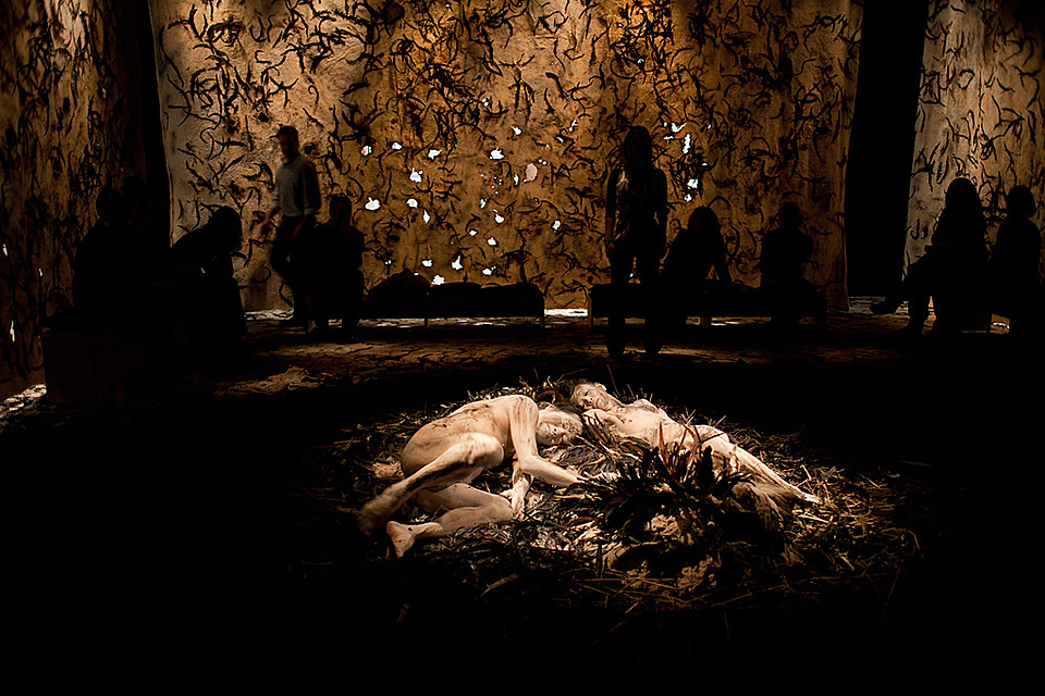The same kind of interdepartmental and interdisciplinary cooperation guided the November 2010 performance of Naked by artists Eiko & Koma. Historically, the Japanese husband-and-wife team performs their works in theatrical settings, but this piece presented a monthlong “living installation” within one of our collection galleries, offering visitors an arresting, surprisingly vulnerable meditation on life, death, and the longing of the soul. In conjunction with this commission, the Walker’s design and publication team organized the artists’ most complete catalogue of their work, Eiko & Koma: Time Is Not Even, Space Is Not Empty, which chronicles the artists’ impact and influence over the past 40 years.