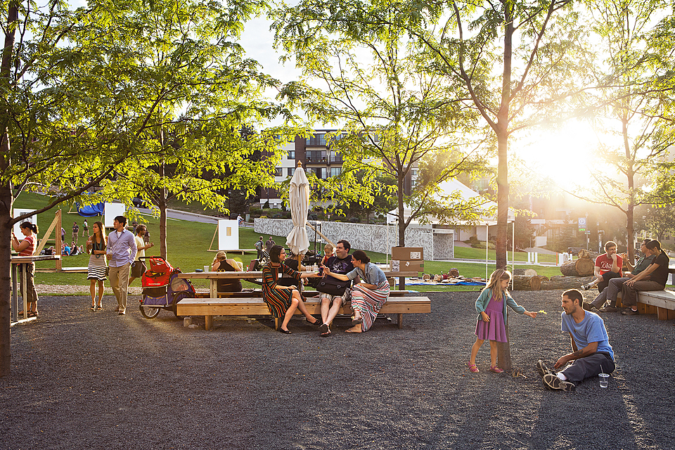 Open Field marked its third season with the publication of a book, Conversations on the Commons. Simultaneously released in print and online, the Walker Postscript volume featured interviews and essays on participation, utopia, and public space from staff and guest writers including Lewis Hyde, Rick Prelinger, and Stephen Duncombe. Outside, Open Field hosted an array of free public events, generously supported by Margaret and Angus Wurtele and sponsored by Optum, including residencies by performing artist Marc Bamuthi Joseph, who met with communities of color across Minneapolis and St. Paul as he developed red, black & GREEN: a blues, a work about social responsibility and environmental justice; Carl and Betsy DiSalvo, whose Kitchen Lab explored food activism; Minneapolis design team ROLU, which led visitors in the re-creation of pieces from the Walker’s collection. Open Field advanced to a sensational close with the world’s first Internet Cat Video Festival in August 2012, which drew an audience of nearly 10,000 and international attention from media outlets ranging from Newsweek to the Bangkok Post.