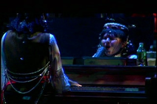 Cynthia Hopkins held capacity crowds spellbound when the Walker presented her funny, inventive, and musically enthralling Accidental Nostalgia in 2005. The piece was so fresh and downright fun that the Walker immediately commissioned its theatrical prequel. Must Don’t Whip ’Um explores the outrageous life of an obscure, fictional pop star from the ’70s, who is under surveillance by the CIA as she performs her “farewell concert” and subsequently joins a Sufi brotherhood. Joined by her band Gloria Deluxe and video artists/designers Jeff Sugg and Jim Findlay, Hopkins offers an infectious blend of alt-country, cabaret, Southern soul, and multimedia theater unlike anything else.