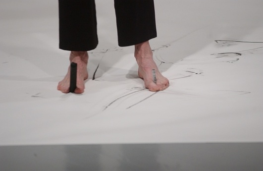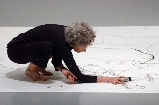 The exhibition centers on a broad survey of Brown’s drawings going back more than three decades, concluding with a large drawing to be performed by the artist at the opening for inclusion in the show. To a significant degree, the arc of Brown’s work in drawing parallels her developments in dance, and footage of seminal performances is present throughout the exhibition. Whether she is working within the frame of a sheet of paper, on the wall, or on the stage, Brown delights in the play between structure and improvisation, between repetition and invention, and between choice and chance. “I get involved in the mystery of space,” she says. “I have the same adrenaline and heartbeat going as I enter the paper as I do going on stage.”