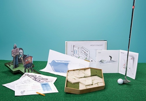 In the mockumentary film This Is Spinal Tap, bassist Derek Smalls suggests that the difference between miniature golf and regular golf is the size of the ball. While the ball remains the same, virtually everything else about mini golf grows—at least on the course of Walker on the Green: Artist-Designed Mini Golf. Small packages hold big ideas in this rebirth of a favorite Walker feature from the summer of 2004. Artists and designers answered an open call to create green-themed holes, pitching ideas destined to challenge players’ senses as much as their games.