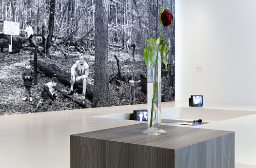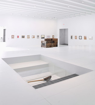 Among a digressive range of topics, Macuga finds speculative relationships between Abbott’s heroic capitalist picturesque and current Tea Party rhetoric, represented in photographs she took at a rally at the Minnesota state capitol. Within an exhibition architecture of her design, Macuga sets elements from the Walker collections and archives—including works by Carl Andre, Joseph Beuys, Marcel Duchamp, and Sherrie Levine—against a monumental new tapestry depicting a famous pine forest in northern Minnesota that accidentally survived the original logging of the state.