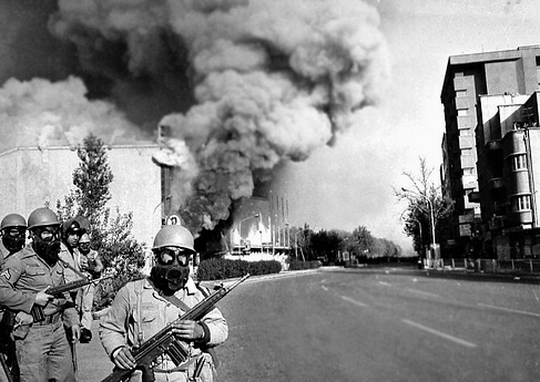 Two shorts connect film and the Islamic Revolution. Into Thin Air (2010, video, 26 minutes) deconstructs rare footage of 1978’s “Black Friday” massacre, when soldiers opened fire on Tehranians unaware of a curfew. Blames and Flames (2011, video, 28 minutes) considers the burning of more than 130 cinemas the same year, as audiences take to the streets, organize as citizens, and turn their cameras on each other.