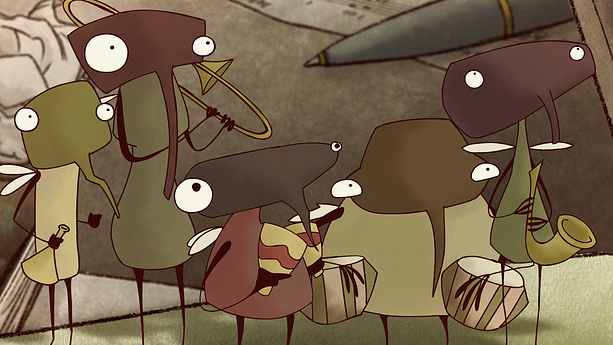 A musician and a group of mosquitoes spend a delightful afternoon making music and playing records. When their phonograph suddenly breaks, tt’s up to the mosquitoes to find the music once again. Directed by Alejandro García Caballero, 2012, 11 minutes.