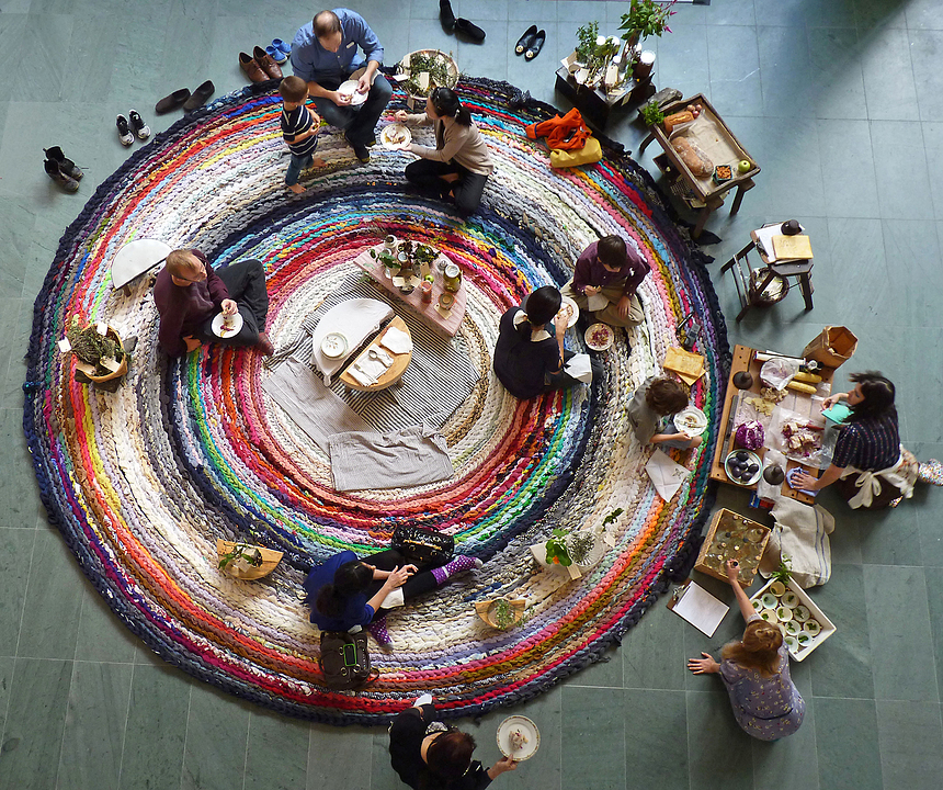 The project culminates with Domestic Integrities A05 (August 8–November 24, 2013), an exhibition in the Medtronic Gallery of new work that explores local patterns and rituals of domestic interior landscapes. This ongoing series examines ways in which gardens and landscapes are harvested and brought into the home. The centerpiece of the installation is a large crocheted rug nearly 30 feet in diameter, made by participants on-site. The space will host weekly rotations of what the artist refers to as “Domestic Integrities”—activities and items based on or made with materials gathered from their environment, from pickled vegetables and baked bread to herbal arrangements and homemade remedies.