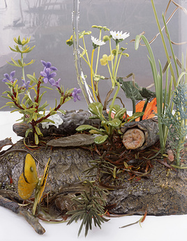 Since the late 1980s, Hodges’ poetic reconsiderations of the material world have inspired a wide-ranging body of work. From the delicate nature of early wall sculptures—including Diary of Flowers (1994), composed with hundreds of doodled paper napkins, and Changing Things (1997), made from disassembled silk flowers pinned to the wall—to the large cut-paper photographs of flowering trees, gold-leafed newspaper pages, and light-filled mirror mosaics of the past decade, Hodges’ art typically begins as humble, even overlooked materials that are transformed through his touch. These acts of subtle transmutation, which have a relationship to sculpture as well as drawing, elevate his pieces to other levels of interpretation and meaning.