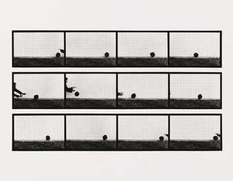 Over the intervening years, until his untimely death in 1984, he labored on what he termed “three grand cooperations” with Marion Faller (his longtime companion and colleague) as well as an ambitious film cycle, Magellan. The former included his widely exhibited photographic series Sixteen Studies from Vegetable Locomotion (1975), a bald-faced historical fiction that posited the existence of images that complement Eadweard Muybridge’s celebrated studies of animal and human locomotion. Magellan, incomplete at the time of his death, constituted an unprecedented aspiration to render cinematically the entirety of human experience in a series of films designed to be screened sequentially over a period of one year and four days—what the artist described as “a work of sculpture in time rather than space.”2