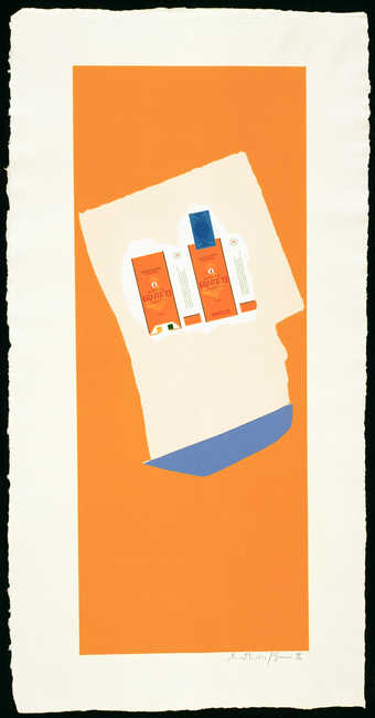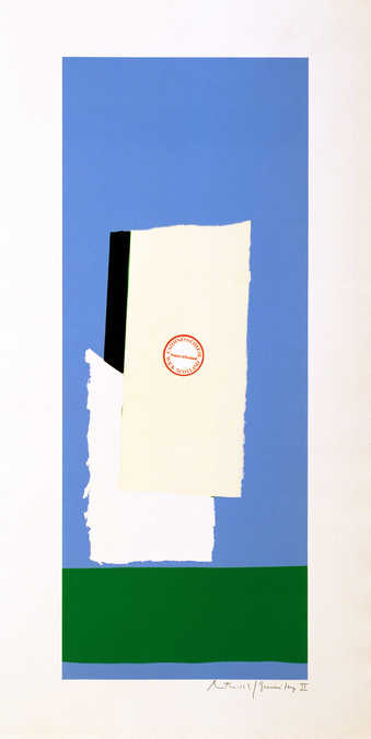 Harvest, with Blue Shadow (with white paper collage)