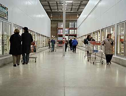 Paho Mann, a photographer from Texas, grew fascinated with the second life of defunct Circle K convenience stores after noticing the same building put to different uses along his commute. Utilizing old phone books to discover former Circle K locations, Mann has photographed scores of new businesses—check-cashing outlets, tattoo parlors, dry cleaners, clothing stores, travel agencies, diners, and, most common, mini-marts—operating under the ubiquitous extended awning that distinguishes every Circle K. Stefanie Nagorka of New York walks into Home Depot stores and creates elaborate sculptures with bricks, pavers, and stones pulled from the store’s garden center. She then photographs her work before the materials are returned to the places she found them. Brian Ulrich of Chicago goes undercover to make witty, stark, and surprising photographs inside big boxes and thrift shops.