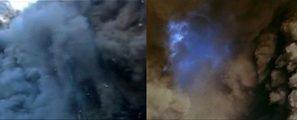 Smoke from the implosion of the World Trade Center on September 11, 2001, and burning oil wells in Iraq