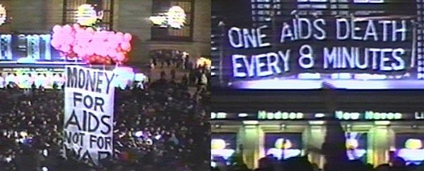 Parts of the film that are so memorable are the ACT UP actions. One, specifically, is in Grand Central and raising a sign that says, “Money for AIDS not WAR.” And the whole place, this huge arena of people, all point up to this sign. It’s such an amazing and empowered place. So powerful. And these guys and women did this. They didn’t vote on it. They planned it, and they did it. They didn’t get funds from some special group. They did it, and it changed things.