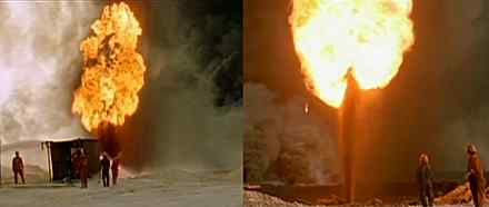 There’s a lot of mirroring going on in the film. Right after Derrida is a scene of paper flying from the World Trade Center towers and the smoke rising from burning oil fields. Then comes this doubling of Halliburton guys, who are there to extinguish burning oil wells, yet are actually lighting them on fire with Molotov cocktails—igniting them because, of course, that meant they’d have another job, and they’ve got millions and millions of dollars coming in. Who’s watching these guys while they’re spending money/making money, burning oil? And then probably Dick Cheney came in and said how proud he is with the job he did.