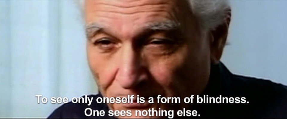 In the clip you use, Derrida says, “To see only oneself is a form of blindness.” After seeing the film, I went back and read the myth he was analyzing for more: