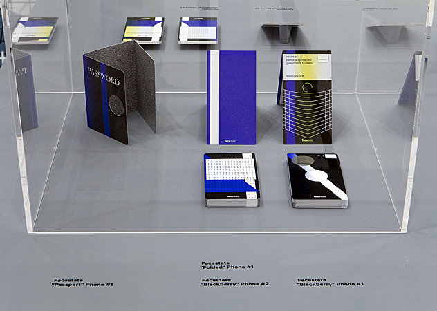 For this installation, we were keen to develop prototypes of digital devices and smartphones that have become such important tools in our daily lives. We’ve always been interested in the potential for the prototype or model in graphic design. Like many of our projects and themes, Facestate will be played out over different formats both printed or in digital form or in writing. The installation at the Walker can be seen as a first installment of this research. We are planning a visual scenario where the phones are photographed with people using them. That will be the next step.