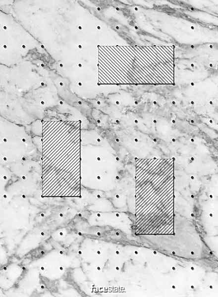 In Uncorporate Identity, we reported about the so-called “Eurion constellation,” a pattern of circles included in print currency so that it cannot be scanned or color copied; the detection of the pattern prevents the software from permitting this. However, the pattern on the floor in Facestate is referencing something else: the grid of No-Stop City, a 1969 proposal by the Italian radical architecture group Archizoom. This grid assumed the equal and horizontal distribution of services. It is considered one of the most far-reaching architectural and urban proposals ever made, along with Superstudio’s Continuous Monument.