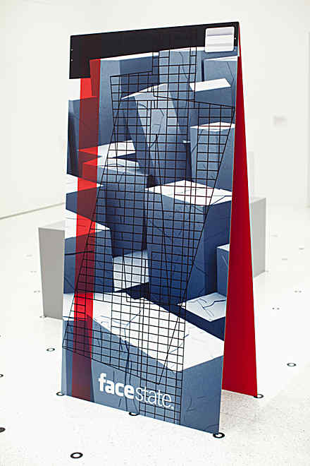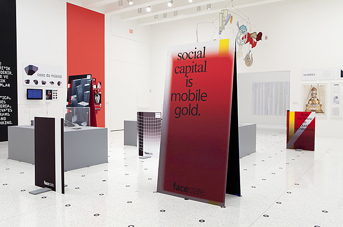 It has been both an honor, and quite odd, to realize this installation as part of a graphic design exhibition. The Facestate project has just started, and at the Walker, where it is situated among finished, often commissioned pieces, it is more of a prototype, a sketch, than a finished product.