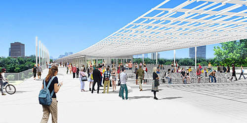 In its recent winning submission for rethinking the pedestrian and transit bridge that crosses the Mississippi River and links the East and West Bank campuses of the University of Minnesota, VJAA together with architects HouMinn and artist Diane Willow, tapped into their decades-long research on skyways and urban circulation systems. Their proposed insertion of various programmatic options—screening and lounge areas, for instance—into this most functional and utilitarian of spaces creatively disrupts the “point A to point B” trajectory, suggesting the possibilities of inhabitation. VJAA are also the lead researchers for a forthcoming publication and exhibition organized by the Walker Art Center on the topic of skyways from both a contemporary and historical perspective.