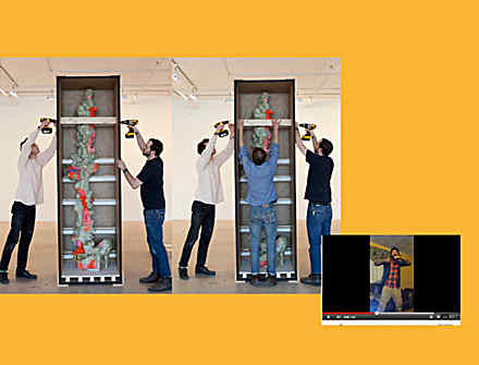 Ian, your contribution to How To Download A Boyfriend is a shot of a photo being taken with a BlackBerry through the peep hole of Marcel Duchamp’s Étant donnés (1946–66) at the Philadelphia Museum of Art. Did you make the image especially for the publication? Is there any connection with the Rachel Harrison e-book and exhibition, which shares its title with her photograph of the back door maintenance entrance of Étant donnés? Does this take us back “behind the scenes” again?