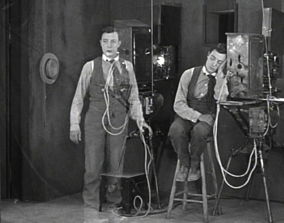 Perhaps more than Chaplin, though, another American silent comedian recognized the linkages between dreams and cinema. In Sherlock, Jr. (1924), Buster Keaton played a projectionist who falls asleep on the job and dreams that he enters the movie-within-the-movie as a detective. The other characters are embodied by his real-world acquaintances (thus foreshadowing later “it was all a dream” fantasies, such as The Wizard of Oz and The Woman in the Window). Chock full of bewildering slapstick sequences and recognized as “an example of primitive American surrealism,” Sherlock, Jr.’s more anarchic moments act as precursors to the Marx Brothers’ later frenzied masterpieces. (Indeed, Sherlock, Jr.’s astonishing set piece in which Buster appears to leap through the torso of an accomplice presages the gag from Duck Soup, in which a dog seems to emerge from a doghouse tattooed onto Harpo’s chest.) But the conceptual crux of Sherlock, Jr. arrives as Buster acclimates himself to his new cinematic surroundings, apparently stepping into the film screen and realizing that he can leap around the globe in the blink of an eye (or, more accurately, in 1/24th of a second). A series of quick edits shows him stepping from a bustling intersection to a steep mountain precipice to an African jungle to a barren desert, all transformed through intricate match cuts. Dreams and cinema are literally intertwined here; indeed, where else can physical reality seem to change shape within a fraction of a second?