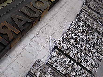 A similar fusion of lo-fi and high-tech is demonstrated in the Letterpress Shanty. Using Twitter, Facebook, and a blog, shanty members are soliciting tweets, marked with the hashtag #shantyq, to typeset and print each weekend in The Shantiquarian, a newspaper that’s distributed on the lake. Fascinated by the current resurgence in the use of old printing techniques, artists Jeff Peterson and MC Hyland decided to bring metal typesetting to the lake.