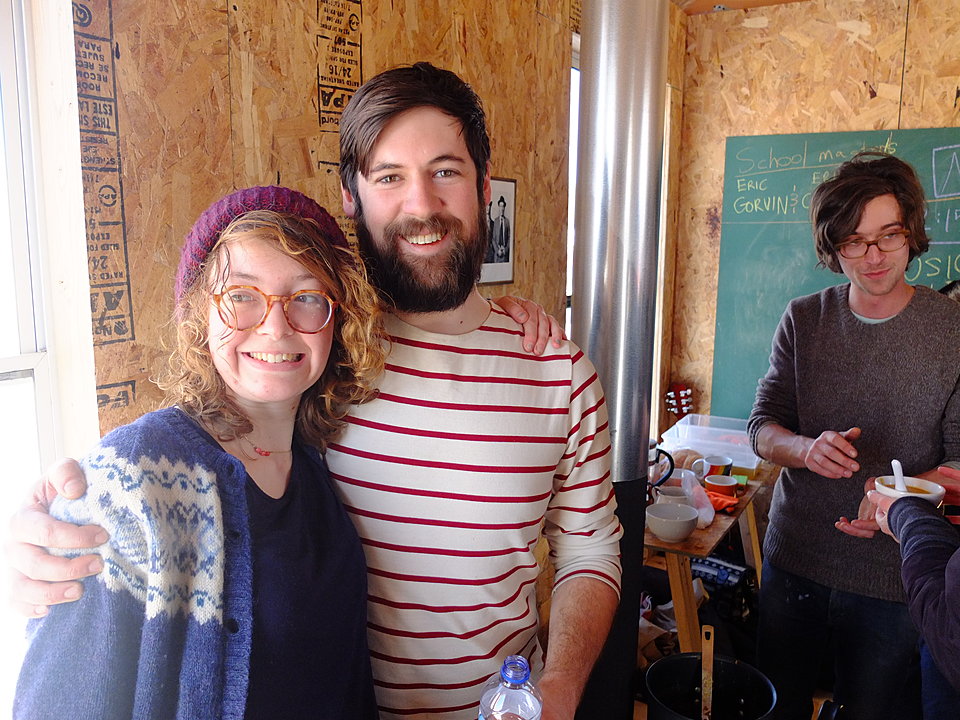 Fresh from teaching a class in the One Room Schooolhouse, Anthony Warnick, outfitted in a seasonally appropriate beard and warming himself beside a woodburning stove, discussed the project one weekend in late January. Generators or electricity aren’t permitted in artists’ shanties, which makes his class all the more unique: sans computer, he used a chalkboard to lead a session on HTML, the markup language used to build web pages.