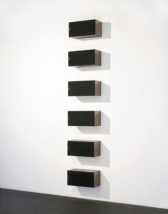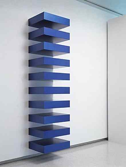 The idea really comes from Donald Judd, how they’re installed. Every time I saw a Donald Judd piece, I started to see big speakers on the walls. Then I said, OK, and wanted to make a painting that mimicked the idea of Minimalism. That’s what it is.