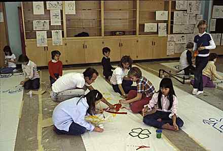 Keith Haring working with students from Alice Smith School in Hopkins, Minn.