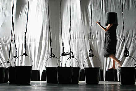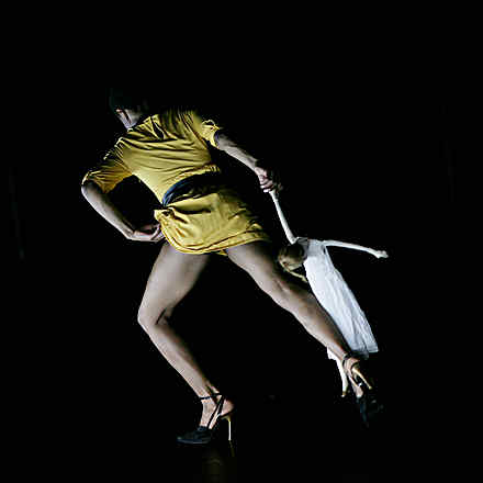 She engaged a designer whose thinking delighted and challenged her own. Symbolic of Baartman’s long‐displayed and legendarily over-sized genitalia, Carlo Gibson (Strangelove) created a “skirt.” Neli described it as a “monster [which] had so many beautiful possibilities. I started to ask myself how I’d manage with the skirt. How to tell the skirt what to do? Actually what became interesting for me was how my body had to manage with this object. That’s always my interest: how my body has to manage with the objects, with the props; and then in that process my body finds a new language.”