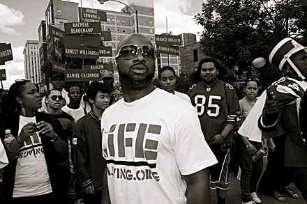 Marc Bamuthi Joseph doesn’t shy away from politics. During a March 7 interview, he brought up the Republican Party several times: its opposition to climate change remedies, the “crazy anti-intellectual fervor” he says is demonstrated in the GOP presidential primary race, the contrast between Newt Gingrich and the congressional members who represent his home in Oakland (Barbara Lee) and workplace at San Francisco’s Yerba Buena Center for the Arts (Nancy Pelosi). Fittingly, Joseph’s new performance work—the Walker-commissioned red, black & GREEN: a blues (rbGb)—draws together in beautiful nexus several matters rarely seen as central to the Republican platform: environmental justice, the lives and communities of lower-income people and people of color (what Joseph calls “urban America” and “multicultural America”), public space, and community. For an artist like Joseph, who operates under the umbrella of relational aesthetics, his medium is the very fabric of social relations currently being effaced by politicians such as Mitt Romney who believes “corporations are people.” In a moment where privatization is encroaching upon, displacing, and redefining the very notion of what it means to be a human being, Joseph’s work vitally speaks out against this threat.