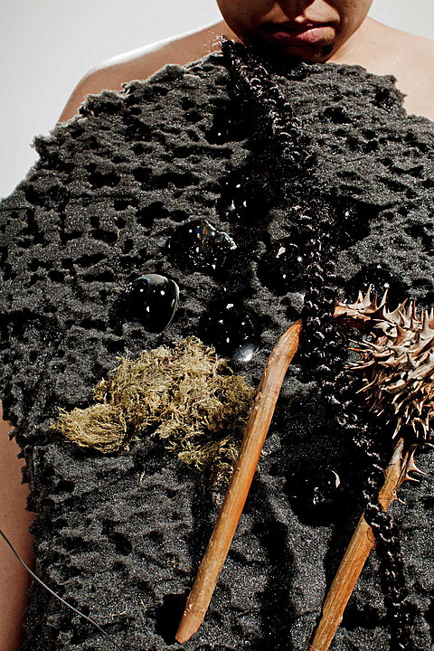 The wearable sculptures were created to be animated during opening-night performances of FireCliff 3, an exploration of nature, myth, and civilization by Lim in collaboration with Minneapolis-based choreographer Emily Johnson (Catalyst).