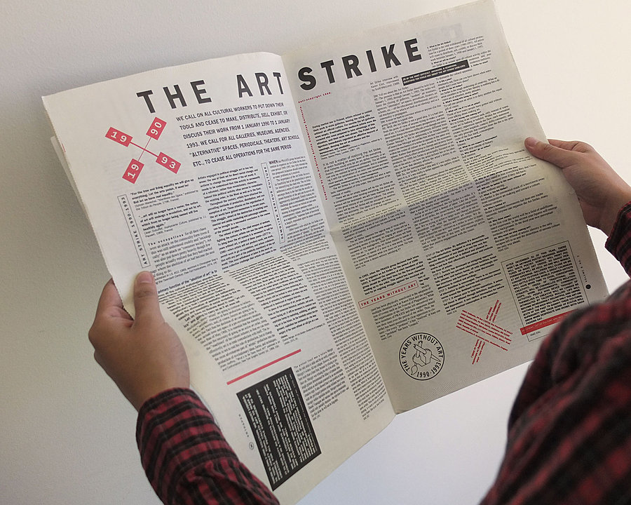 In October 1989, Artpaper ran an article calling for an art strike that would last from 1990 to 1993—during this period, artists and art institutions throughout the country would cease to make work. The strike mainly called into question whether being an artist was an acceptable response to the cultural issues present in the world at the time. Was this an idea many people were aware of? What were people saying about it?