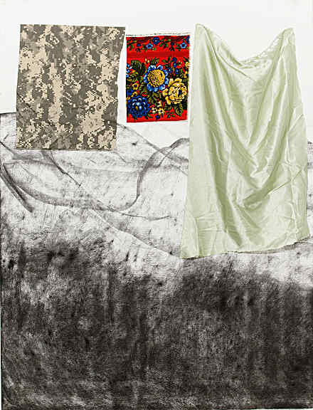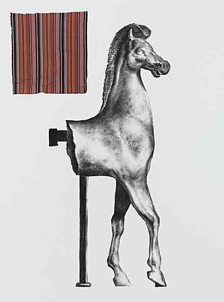 I first thought you said conceptual pull, P-U-L-L, and I think that sounds right to me. The drawings and collages are essentially two sets. I made the first set in 2006. Then I made a second set this year. Even though five or six years separate them, they were made with the same motivation in mind. I wanted to make visual images that travel with the speeches without complementing them. So it gives a kind of conceptual push and pull. There are some representational works, there are some abstract works, but they all work to push and pull at the speeches—to show how fluid the idea of democracy is in terms of how Hussein talks about it, and maybe in general. How abstract the terms of democracy can be as you start to untangle them with other ideas. With Hussein, it’s about the Baath Party and socialism—the right processes in which Iraq can come out of its history and begin to exist as a modern secular Arab state.
