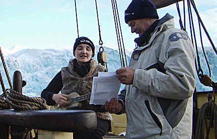 The music is the through-line and definitely one of the major delights of the piece. Although the footage of the Arctic is so gorgeous, it’s another reason in itself to see it. Some of it is shot by David Buckland [director of Cape Farewell] and some by the videographer on the boat, Matt Wainwright. And then there’s the story: there were these fascinating people on the boat with me, so they become kind of characters in the piece.