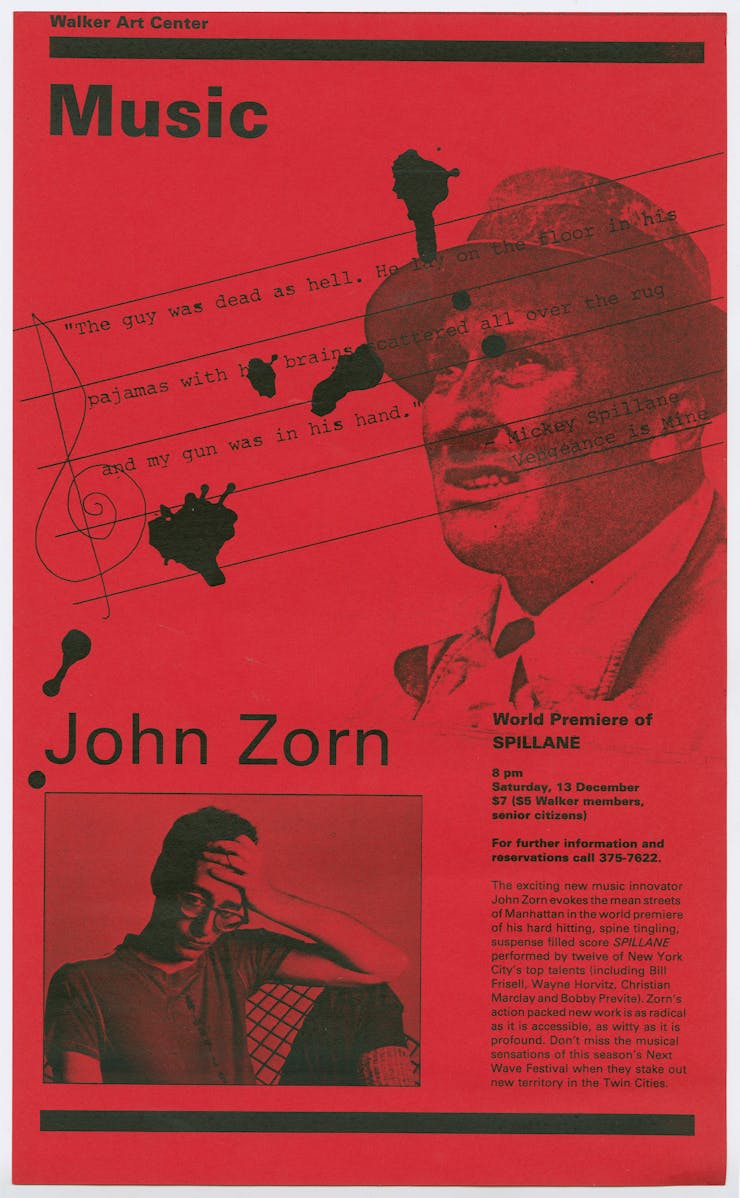 I was first aware of John Zorn in the mid-1970s when I received a tiny note written in tiny but exquisite handwriting. It was about my opera Quarry, and was signed “John Zorn.” I wondered who he was. Just the name was intriguing.
