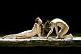 THE MAN AND WOMAN LIE IN A HEAP of long black feathers, salt, dirt, and other organic detritus, naked, their bodies painted grey-white and daubed with dirt. The light — amber, pooling — fades and dawns as they gradually shift like sleepers, their hands reaching, opening, closing, rolling themselves slowly over so now her shallow side dimly glows under the light, now his curving rear. They’ve made themselves a…