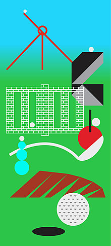 18 Holes in One, by David Lefkowitz and Stephen Mohring, is a physical manifestation of an overlay of all 18 legendary greens as Augusta National Golf Course, home of the Masters Tournament. The result will thrill and challenge both the novice and seasoned mini-golfer alike. With 18 potential targets in their sites as they approach the undulating surface of the composite structure, they will encounter a nonlinear spatiotemporal golfing experience like no other.