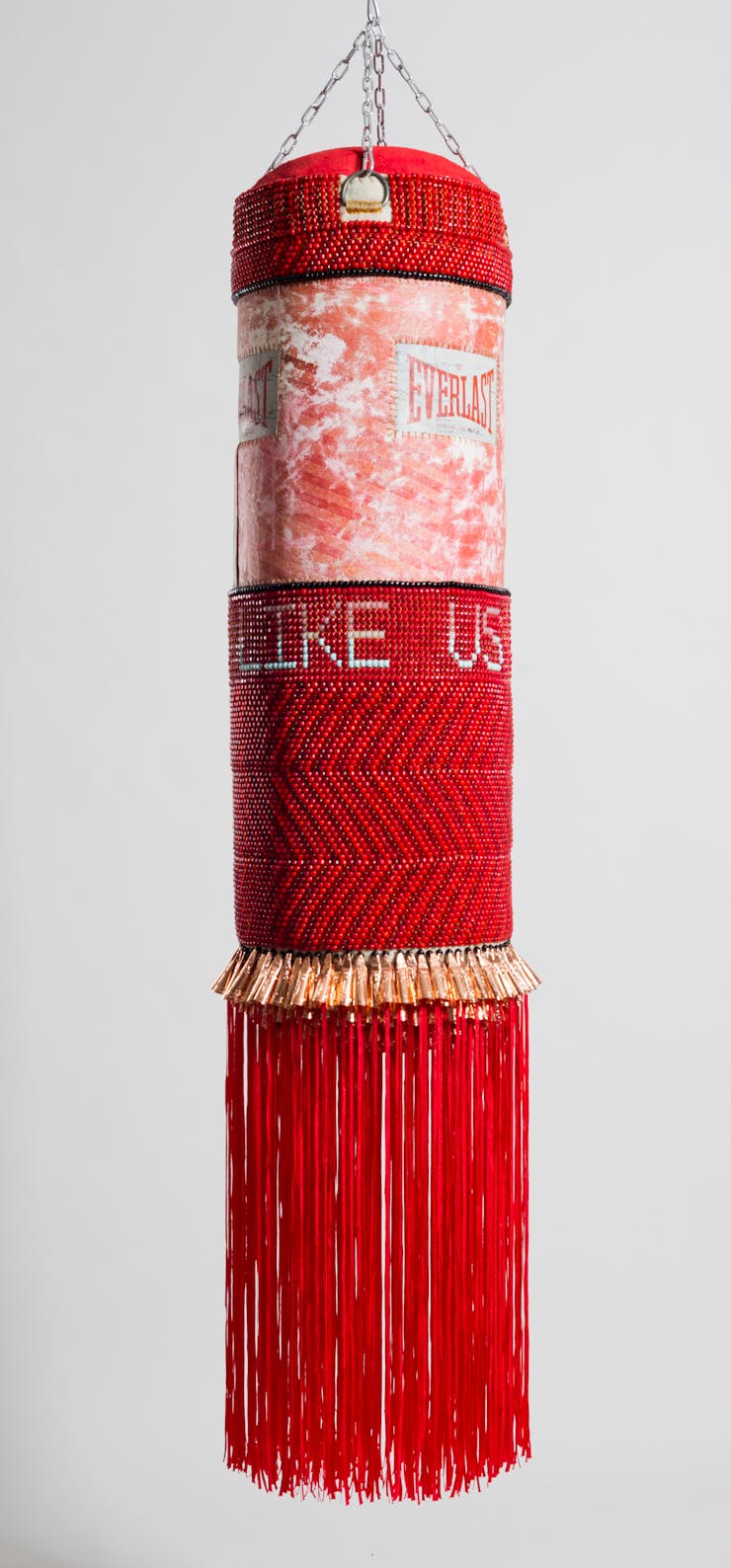 Jeffrey Gibson (Mississippi Band of Choctaw) is a New York–based mid-career multidisciplinary artist. A citizen of the Mississippi Band of Choctaw Indians, he is half Cherokee, and he incorporates his heritage into his work, which includes abstract sculptures, paintings, and prints. He earned his MA in painting at the Royal College of Art, London (1998) and his BFA from the School of the Art Institute of Chicago in 1995. Gibson’s work is in the permanent collections of the Denver Art Museum, Museum of Fine Arts, Boston, the Smithsonian’s National Museum of the American Indian, and the National Gallery of Canada, among others. He is a faculty member at Bard College, a past TED Foundation Fellow, and a Joan Mitchell Grant recipient.