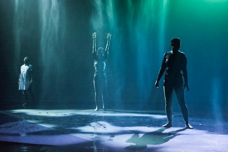 “Like the best science fiction, Lewis’s work is most successful in its insistence that the spare can be made spectacular.” —ArtforumFour performers delve into a deconstructed landscape of water in this dark, theatrical meditation on showbiz, the surreal, sensuality, and the end of times.