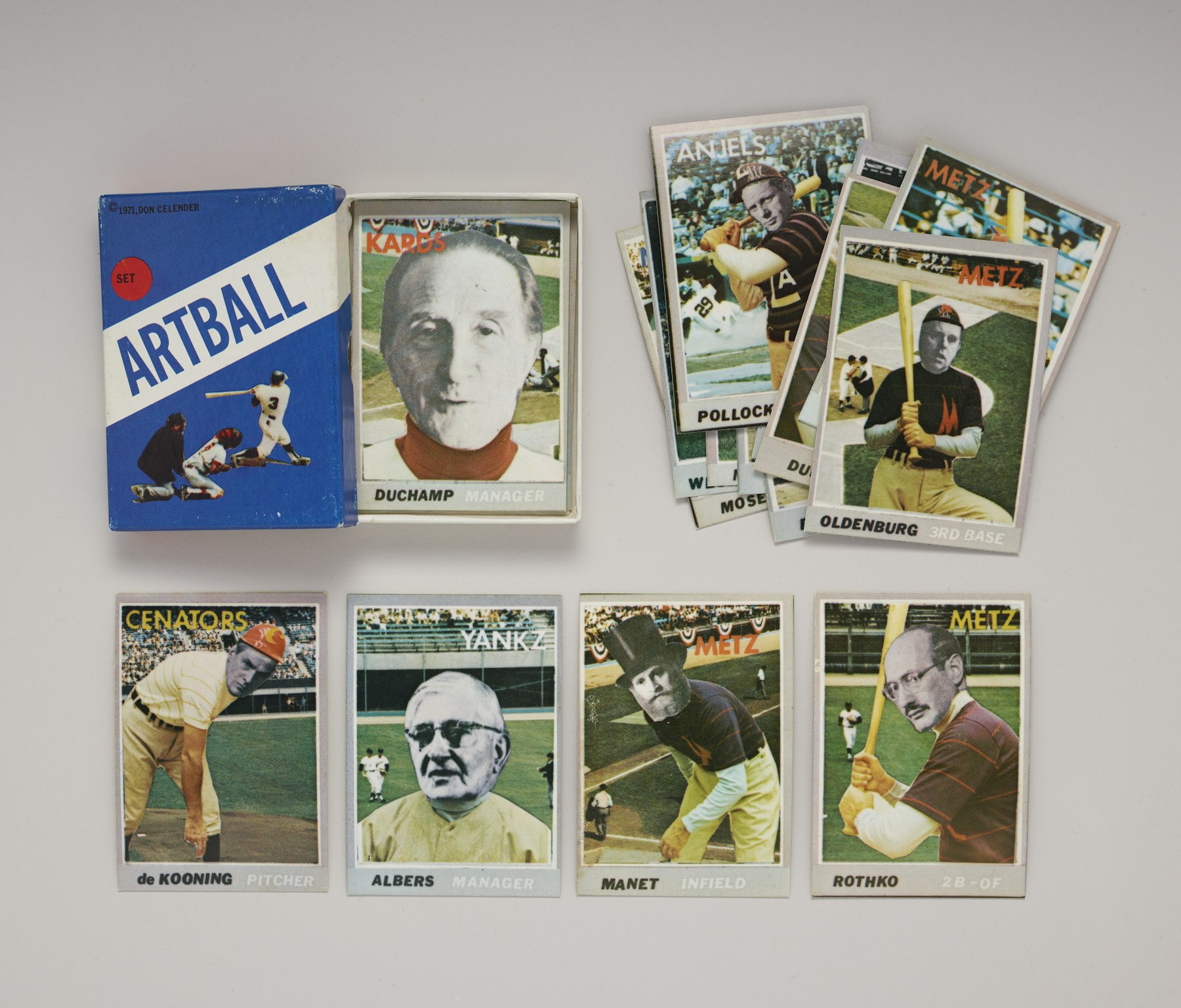 - 54 playing cards and box, commercially printed after the idea of baseball cards