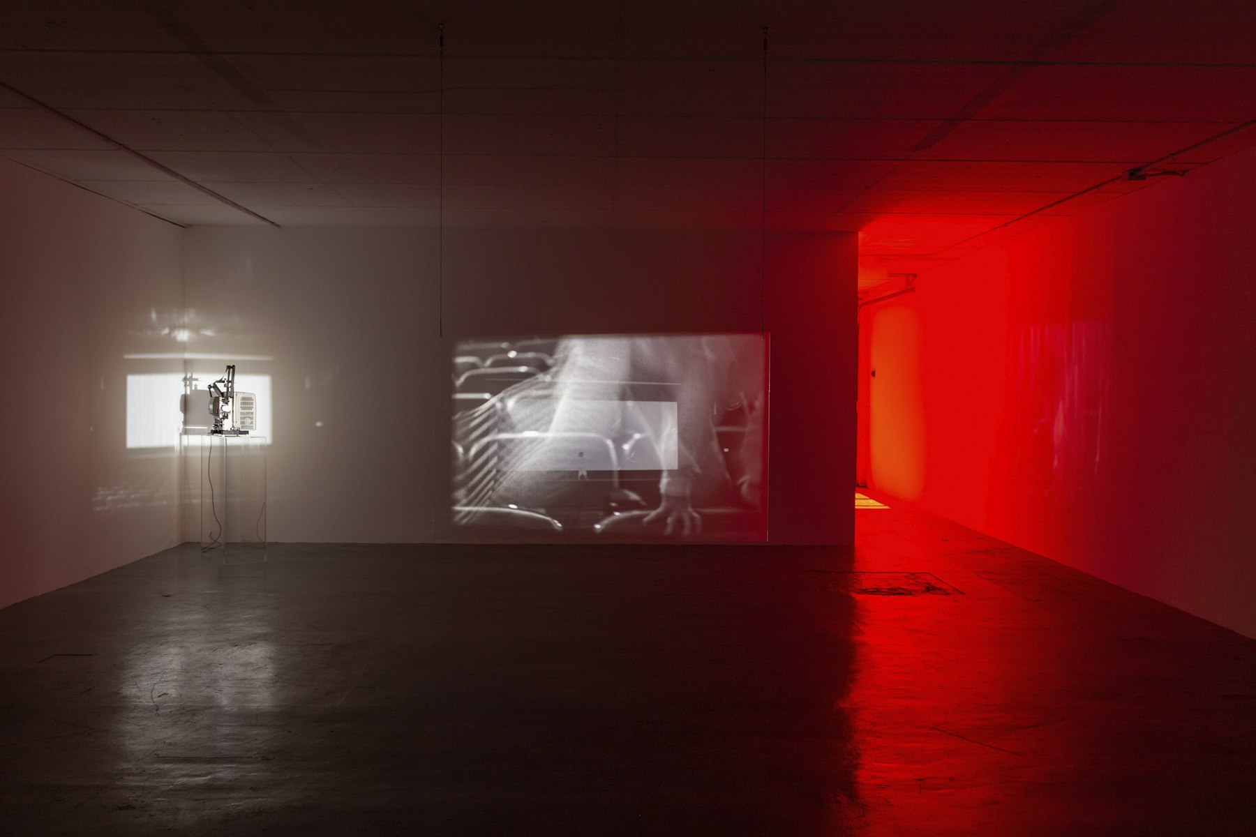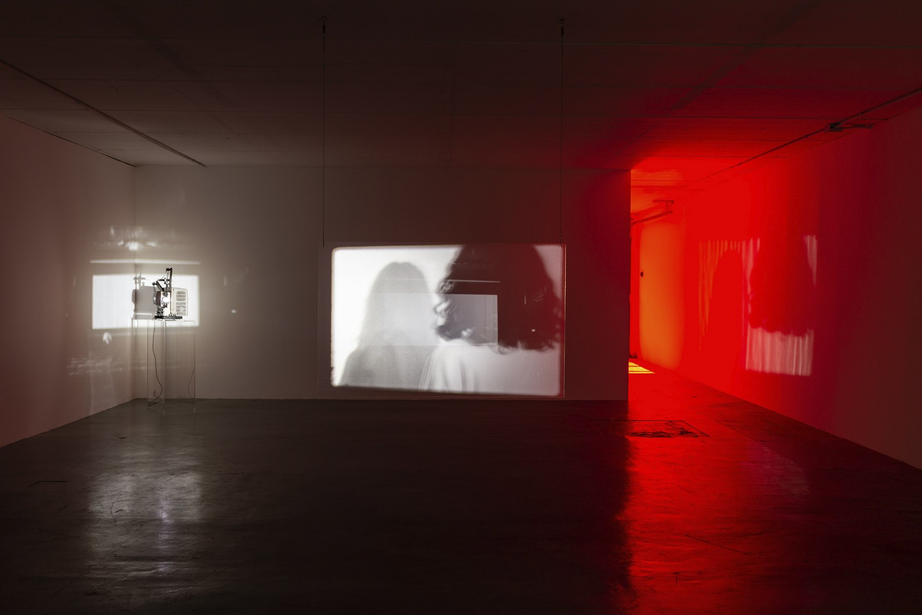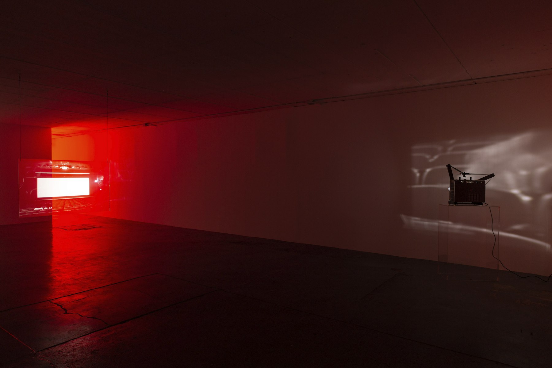 - 2 channel 16mm film (black and white, sound), holographic plexiglass