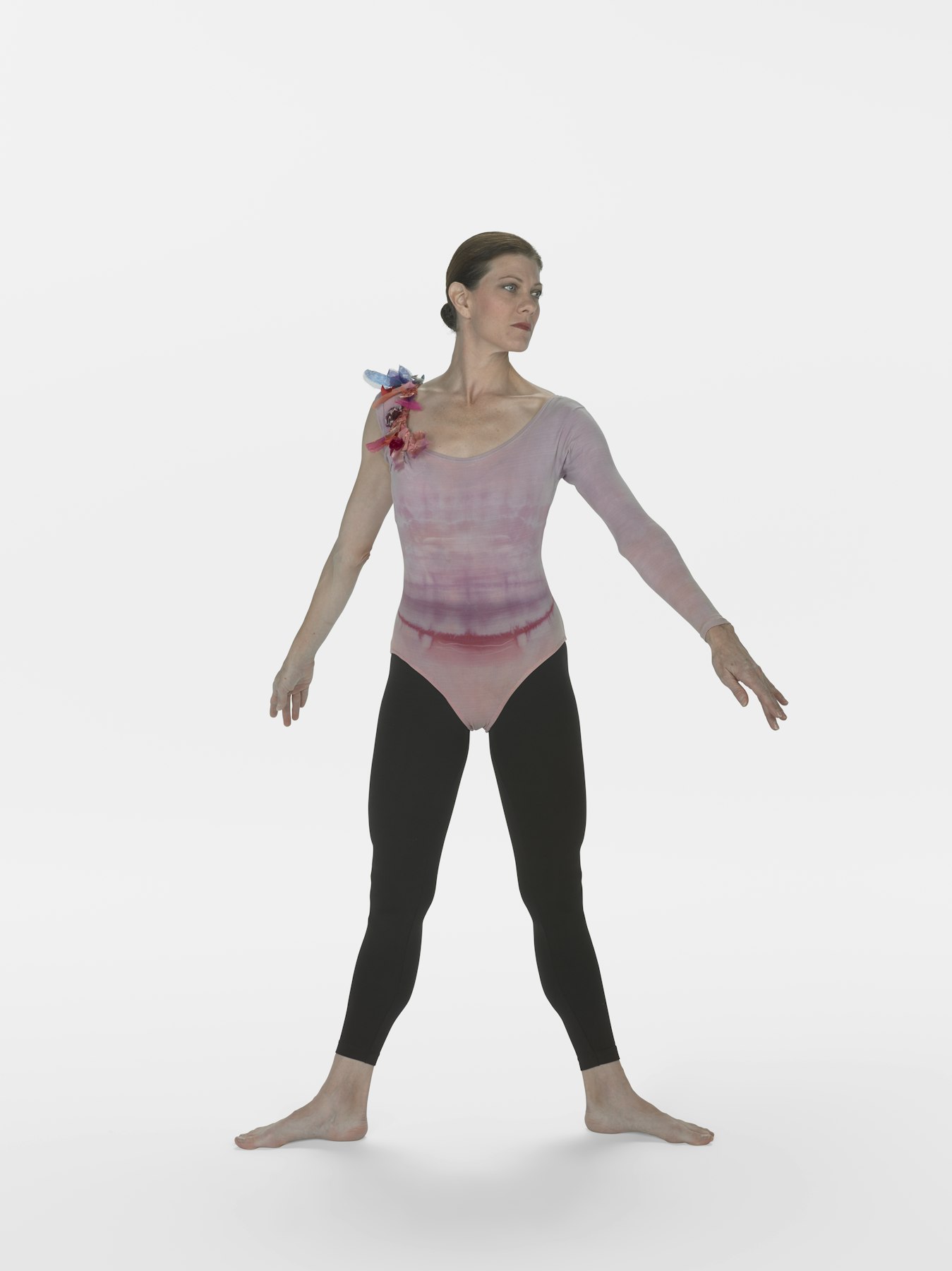- colored leotards, women's leotards trimmed with fabric petals