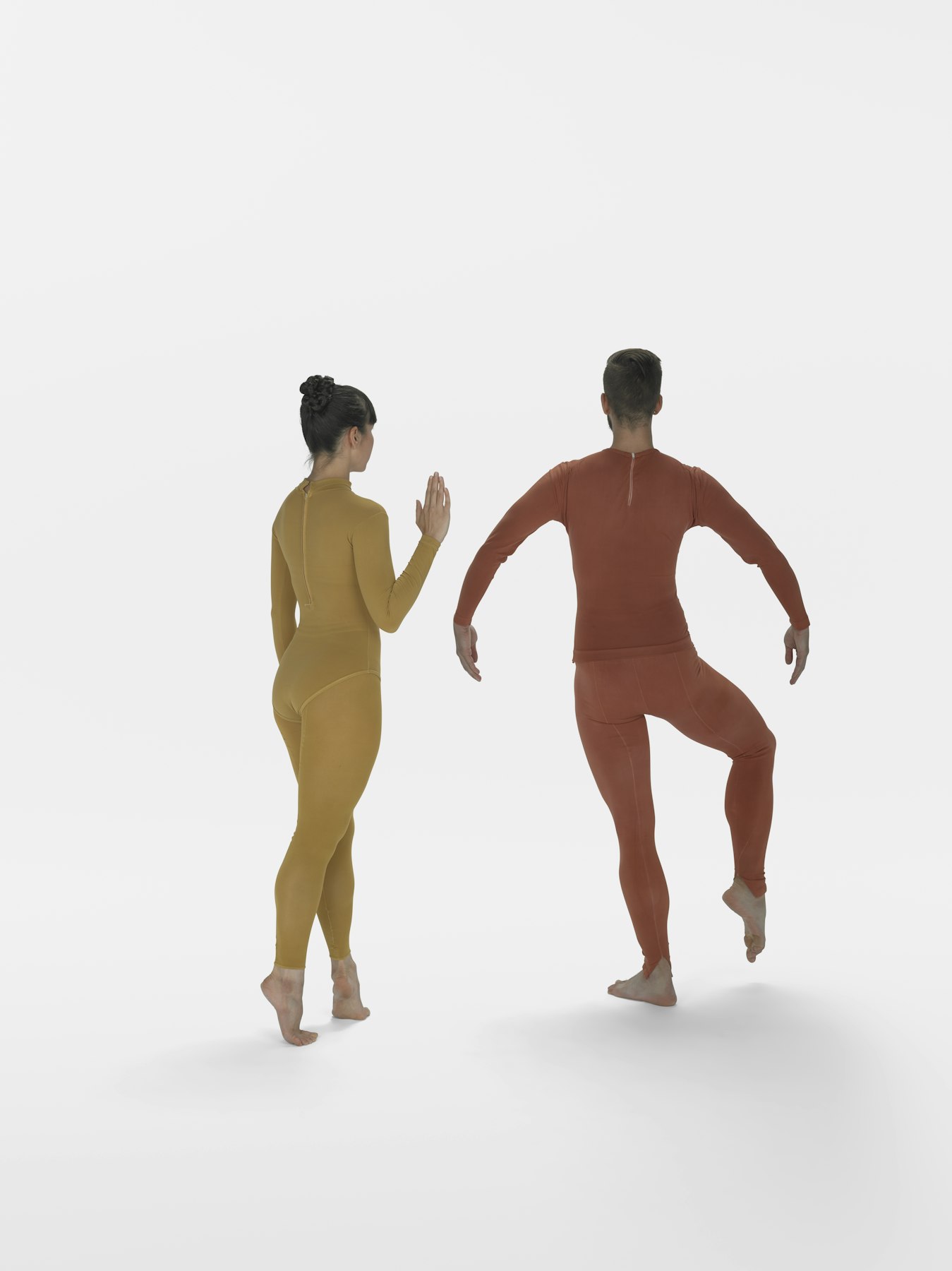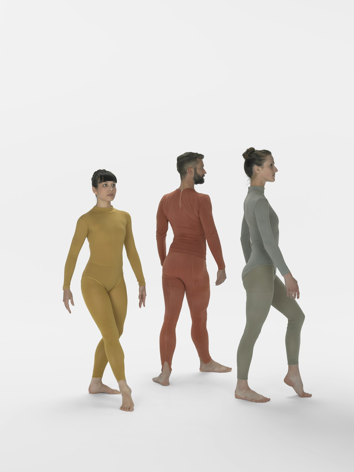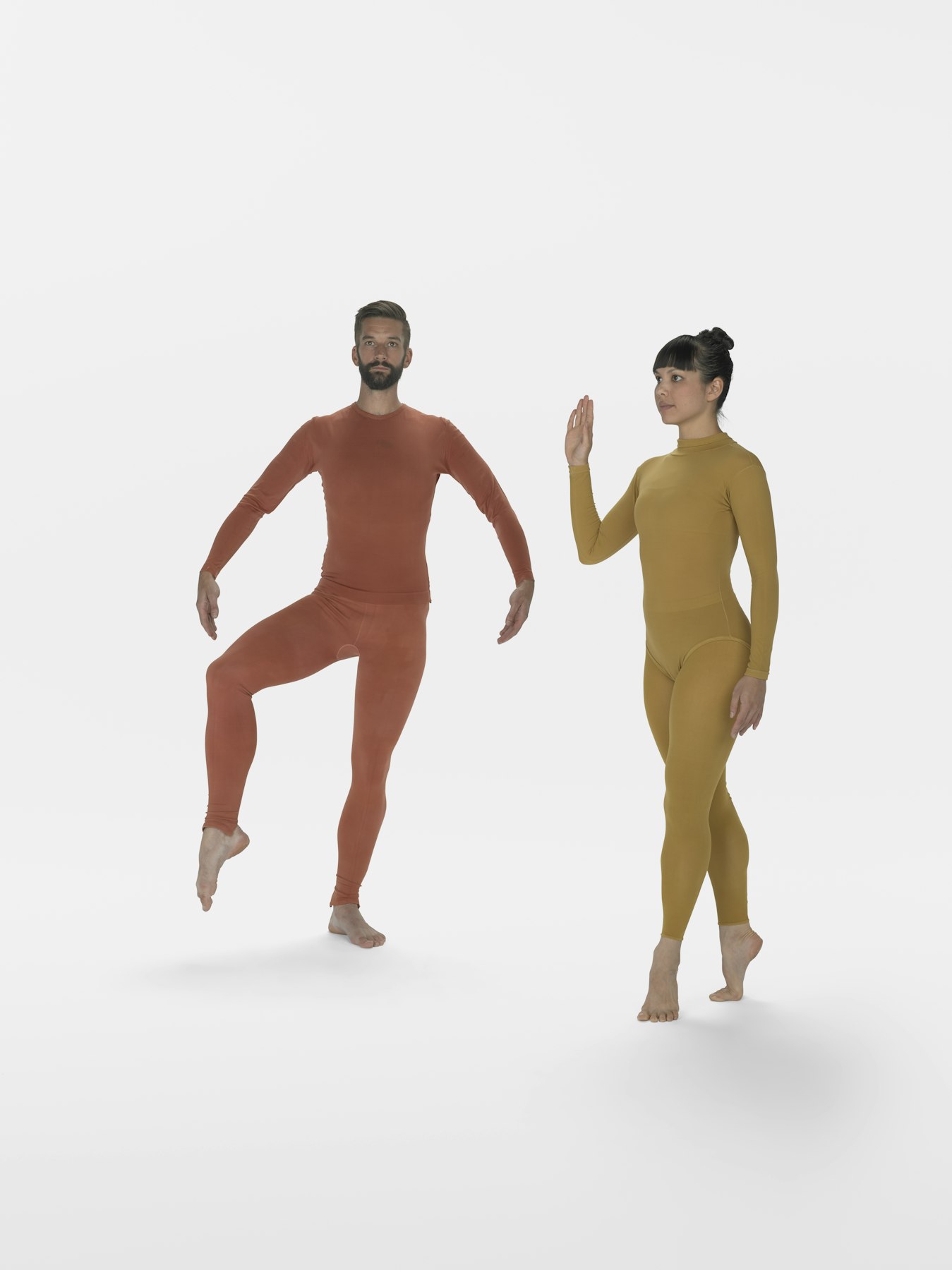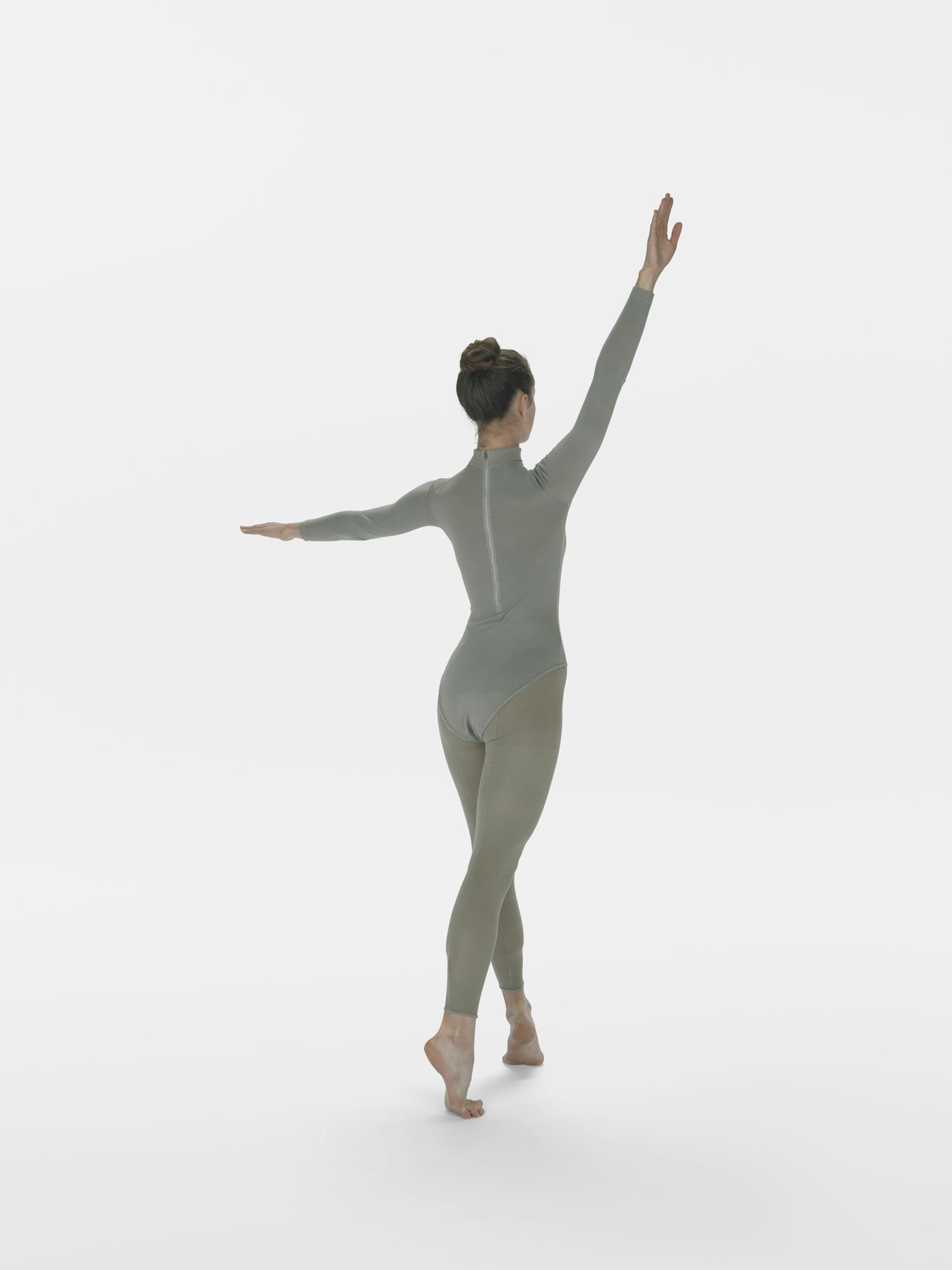 - Nylon earth-tone long sleeve leotards, long sleeve shirts, footless tights