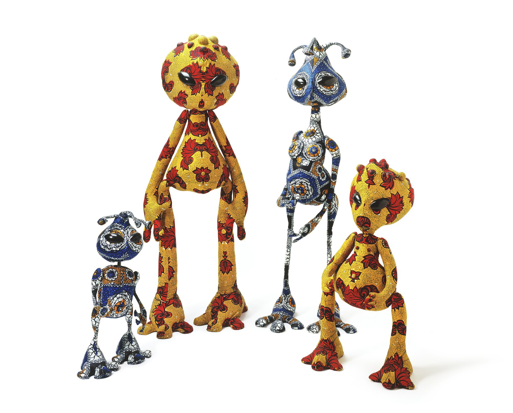 - wax-printed cotton, polyester, wood, plastic