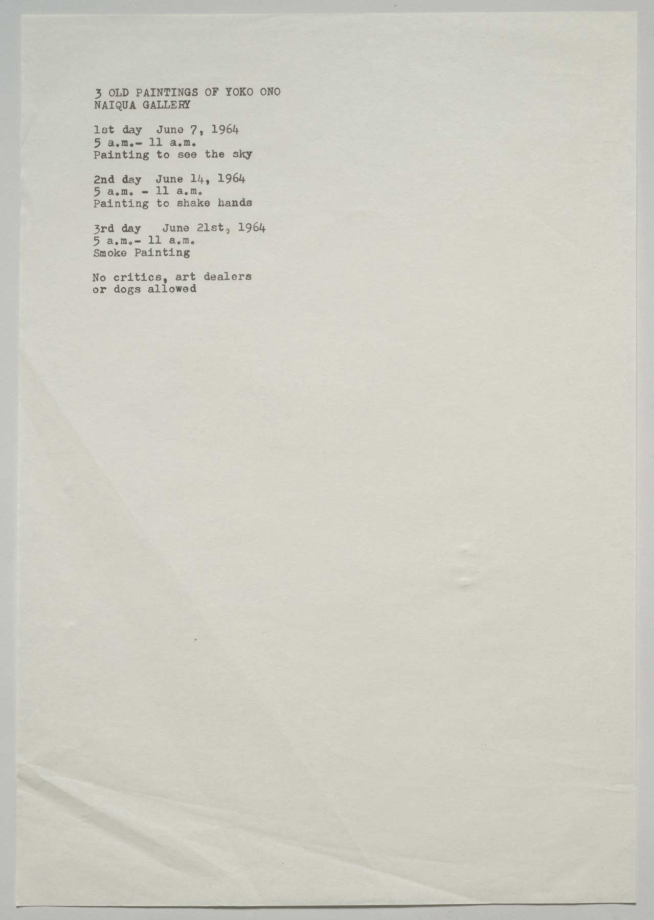 - Flyer for Three Old Paintings of Yoko Ono, Naiqua Gallery, Tokyo