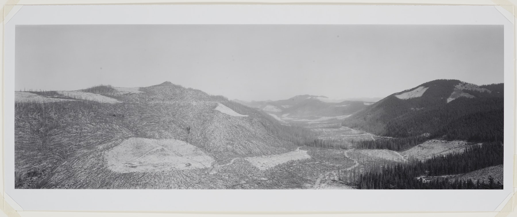 - Looking north up Clearwater Creek Drainage from a spot 9.5 miles E. of Mt. St. Helens, Washington 1981 (This small canyon marks the eastern boundry of the effects due to blast and heat)