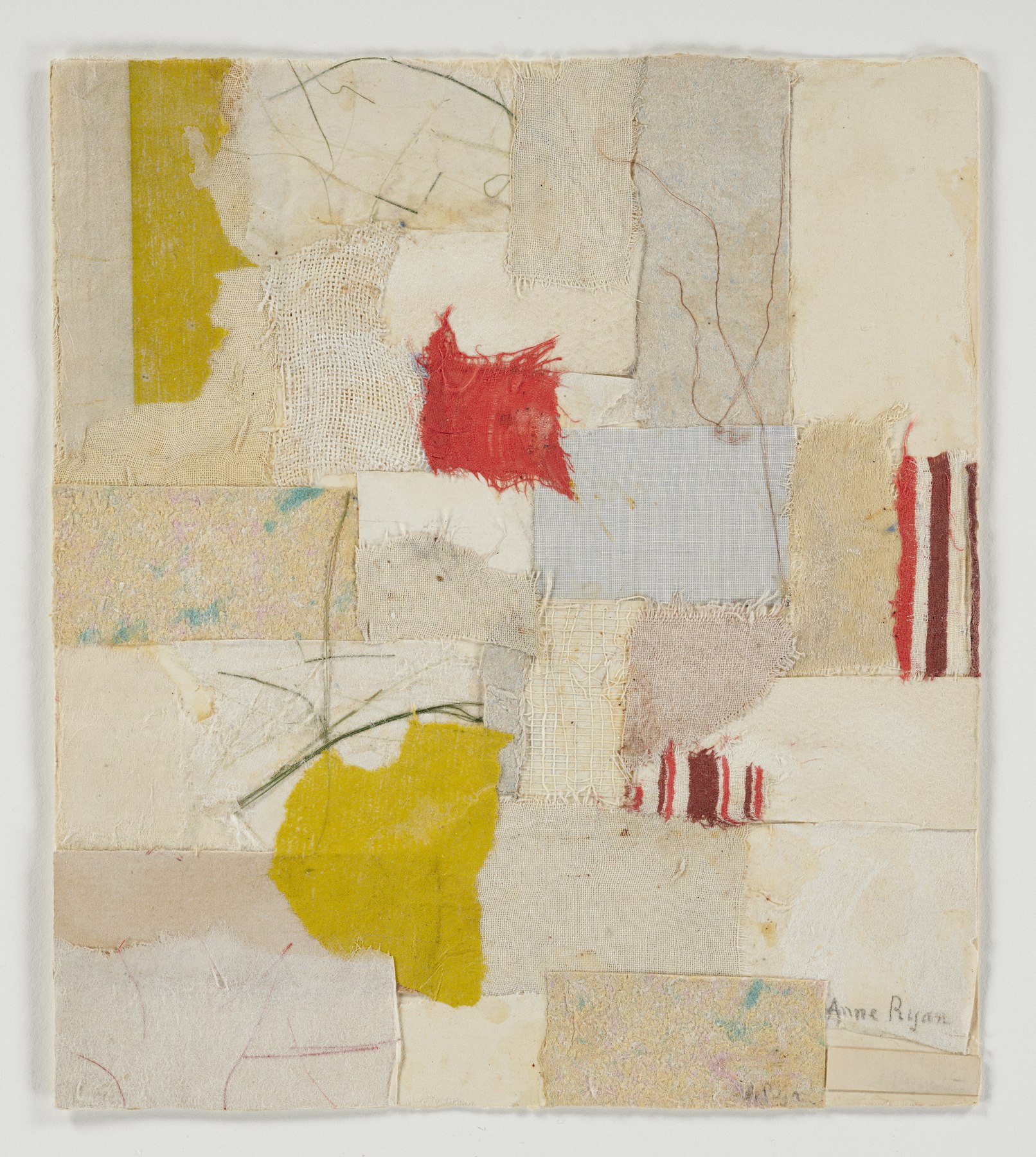 - fabric, paper and string collage
