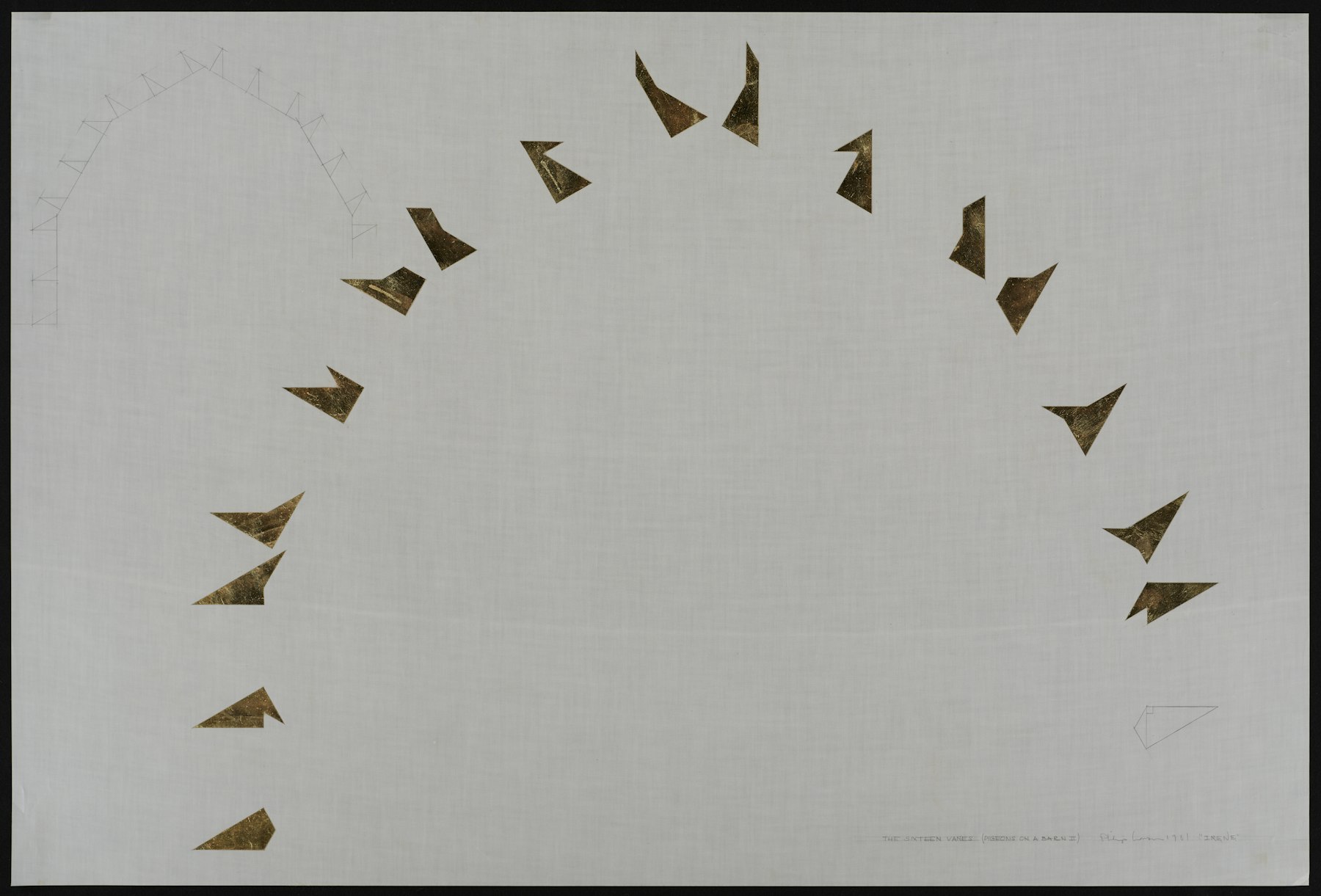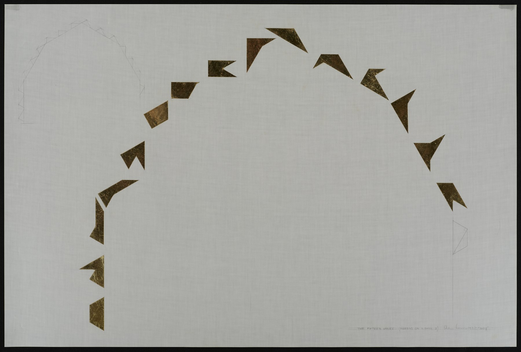 - graphite, 23K gold leaf on vintage German architectural linen
