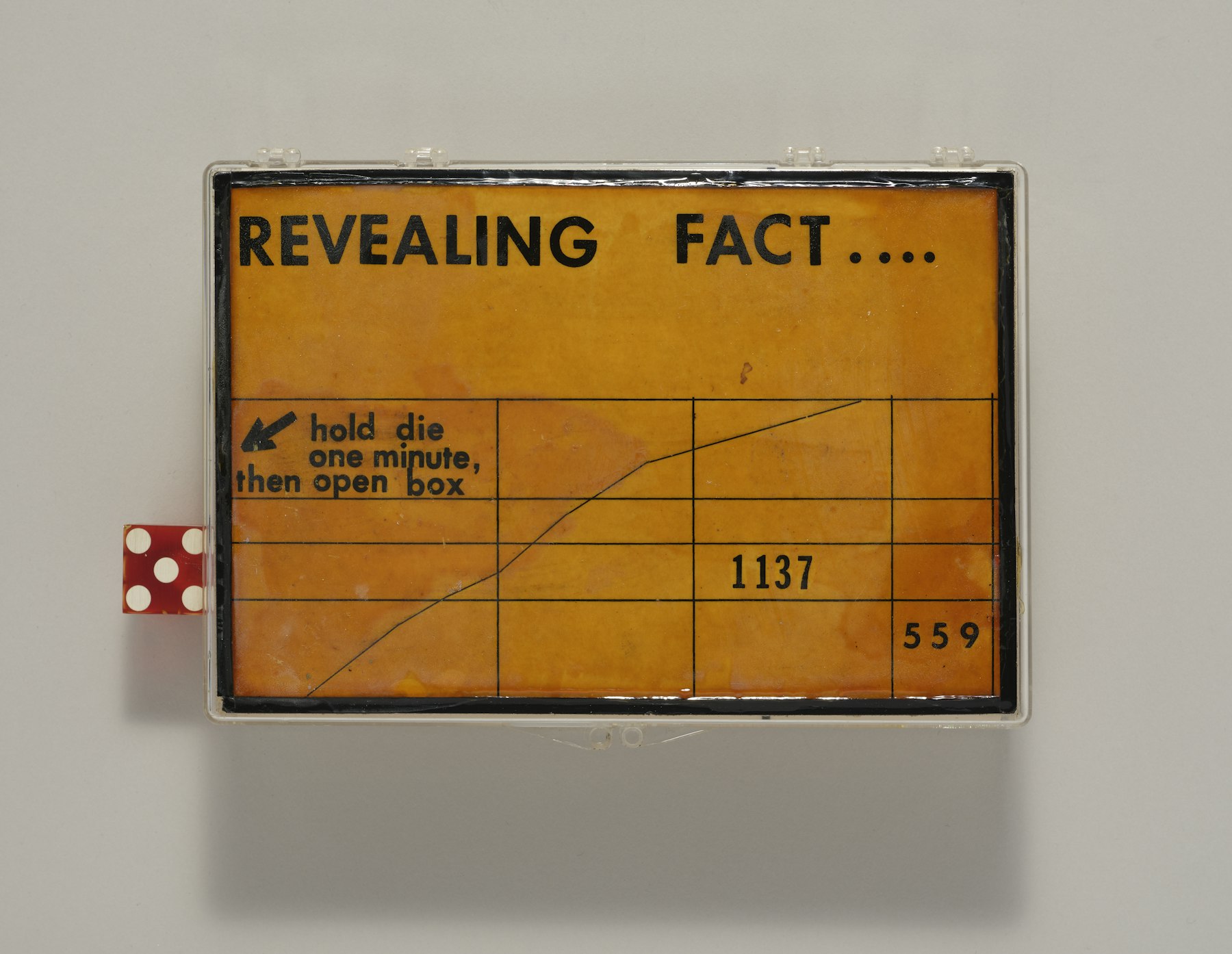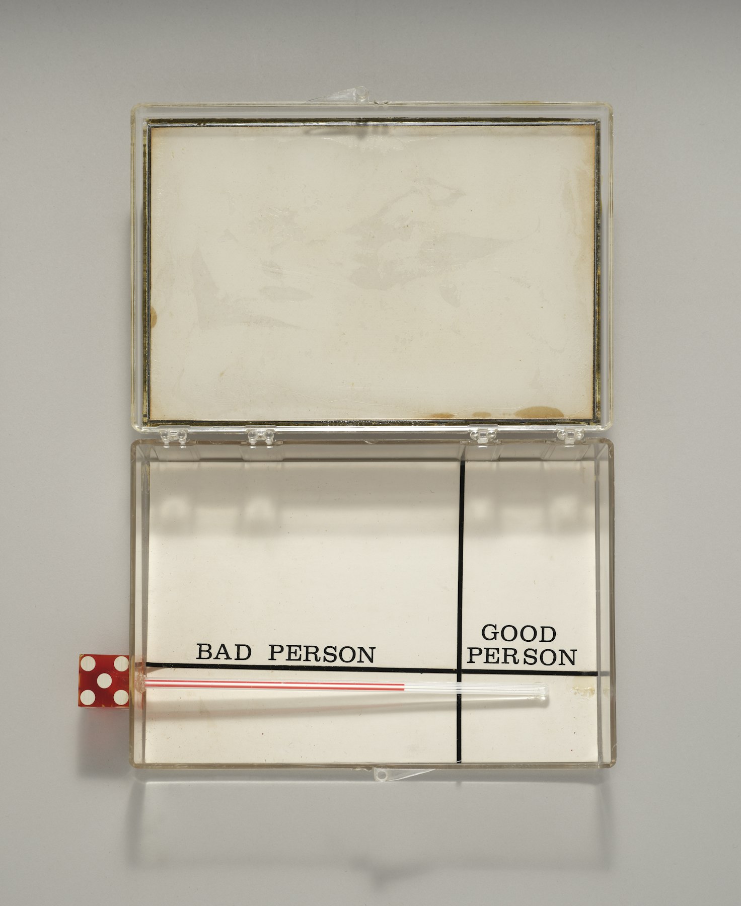 - hinged plastic box paper, red plastic die, thermometer, glue