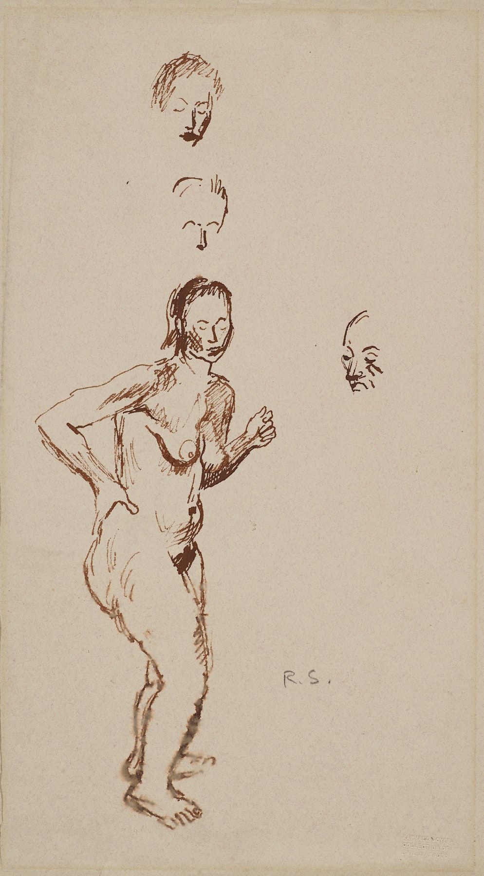 - Standing Female Nude with Hand on Hip, Sketches of Three Heads