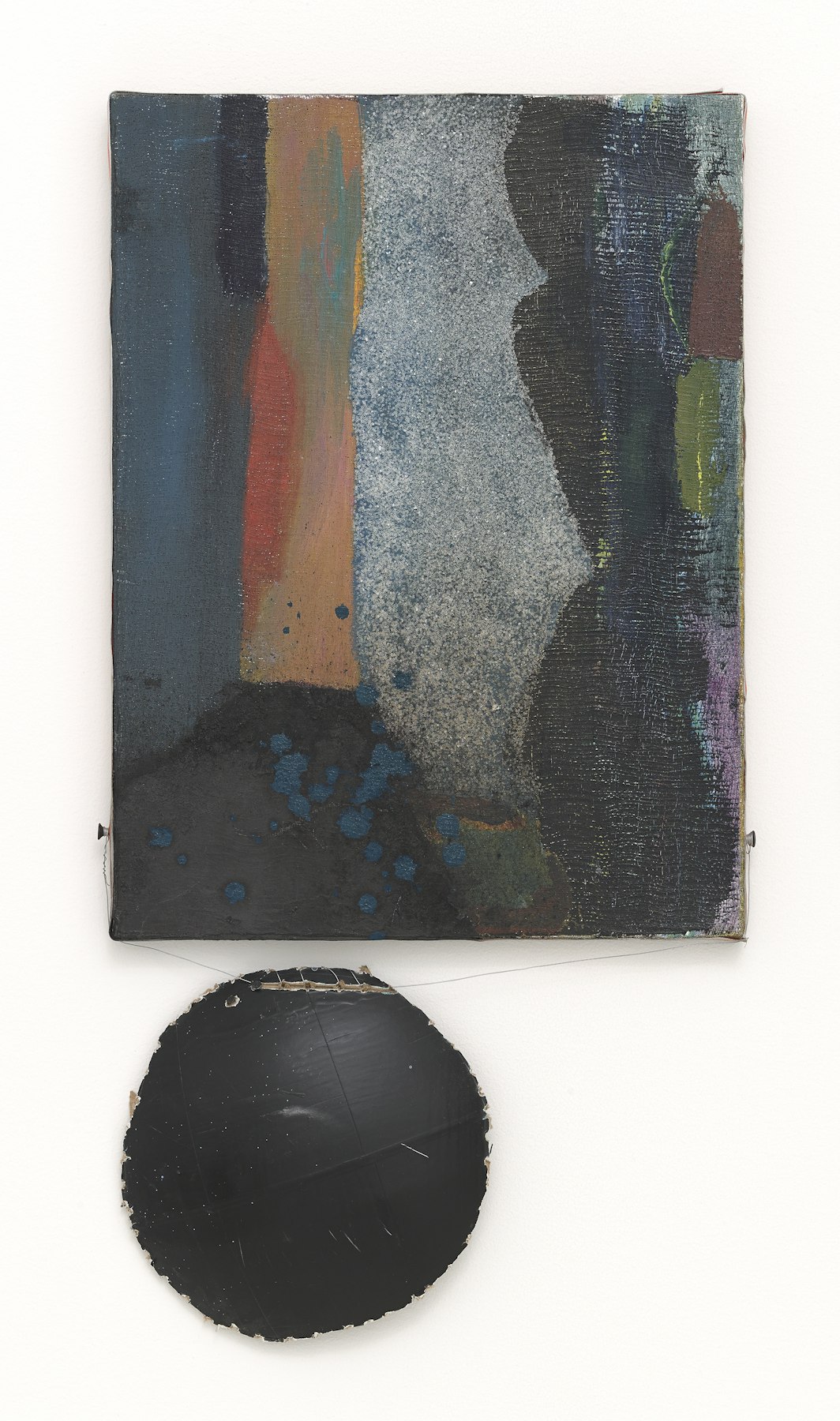 - oil, glitter, screws, ribbons, globe scrap, wire on cheesecloth